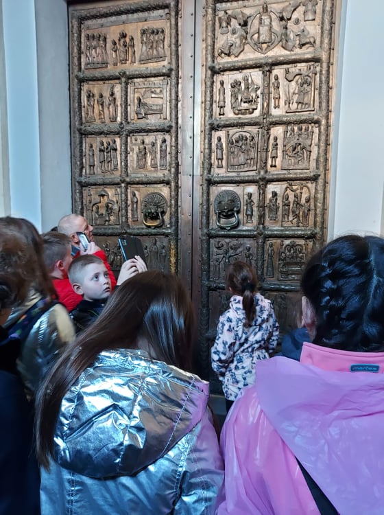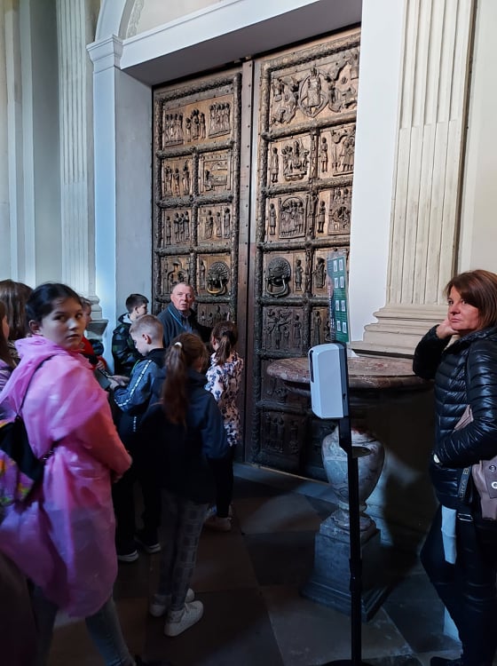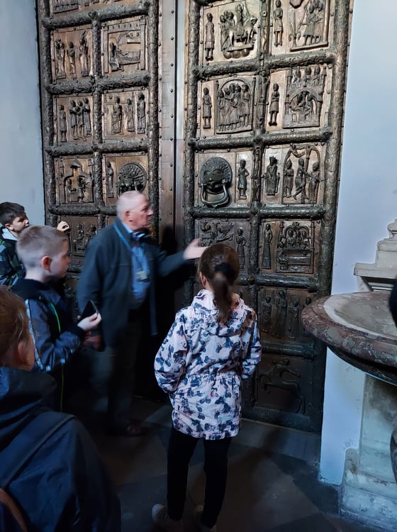 Zwiedzanie Płocka zaczęliśmy od spaceru po Wzgórzu Tumskim podziwiając przepiękne widoki na najdłuższą rzekę w Polsce. Tam mijając liczne pomniki znanych płocczan napotkaliśmy ślady dawnej świetności miasta – zachowane fragmenty płockiego zamku i jedną z najstarszych katedr w Polsce. W Bazylice Katedralnej słuchając opowieści o jej historycznych i artystycznych wartościach sięgających czasów romańskich podziwialiśmy barwną polichromię i słynne Drzwi Płockie, oraz zwiedziliśmy Kaplicę Królewską z grobowcami królów Polski.