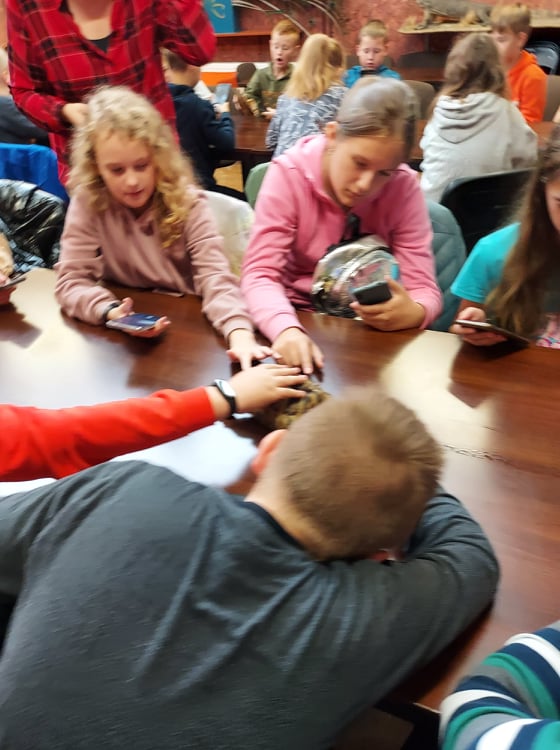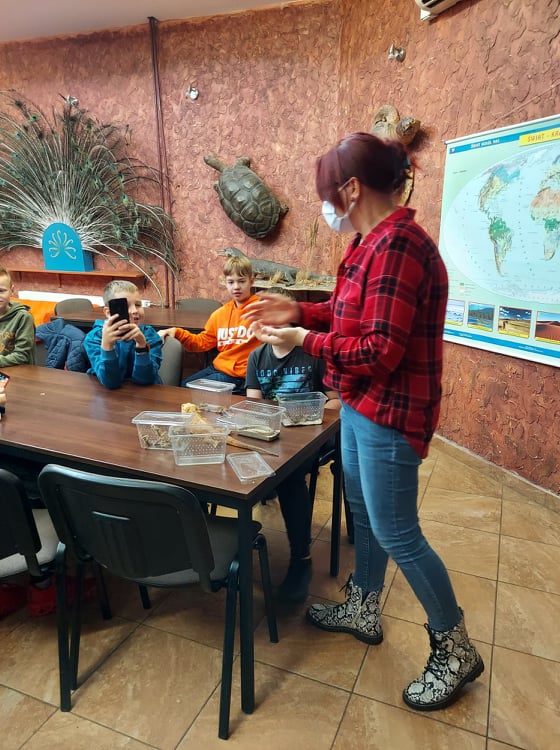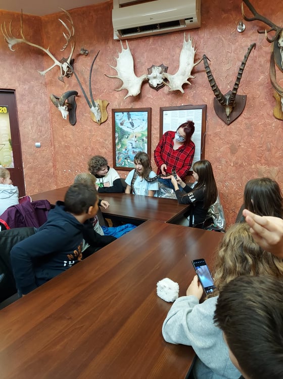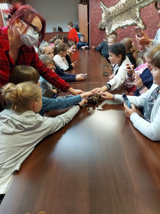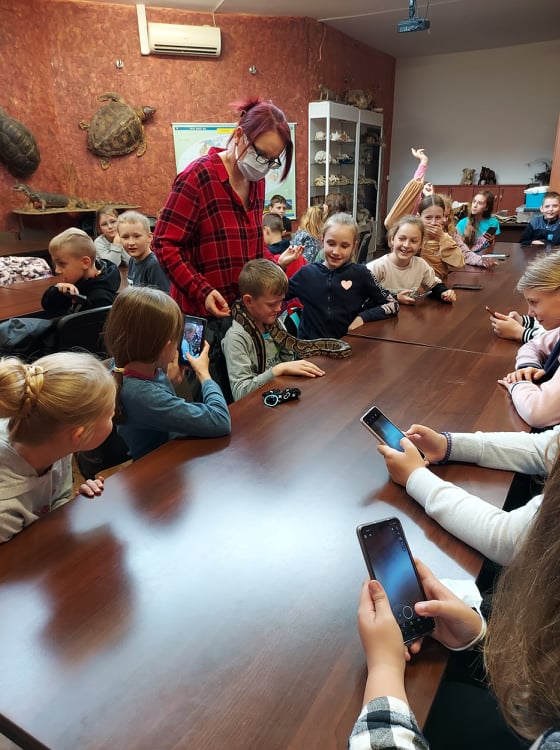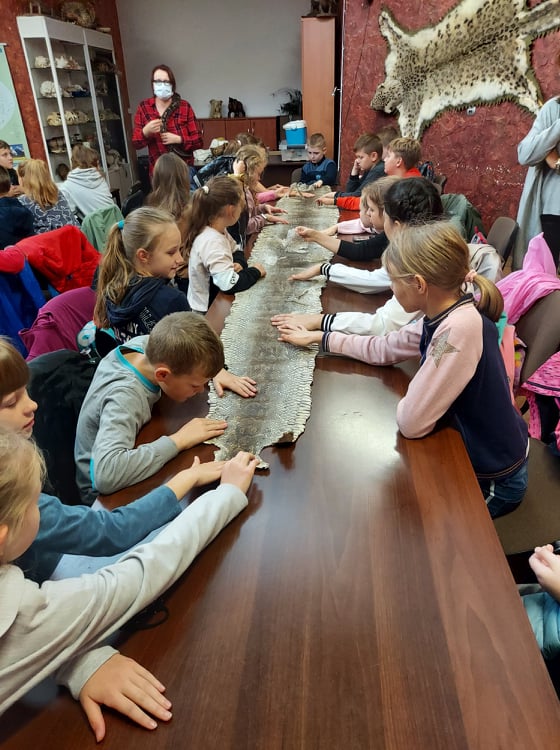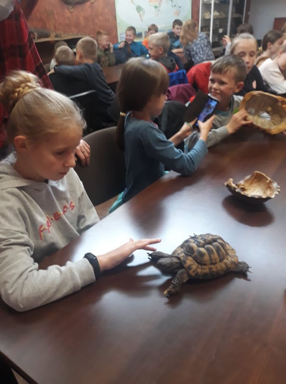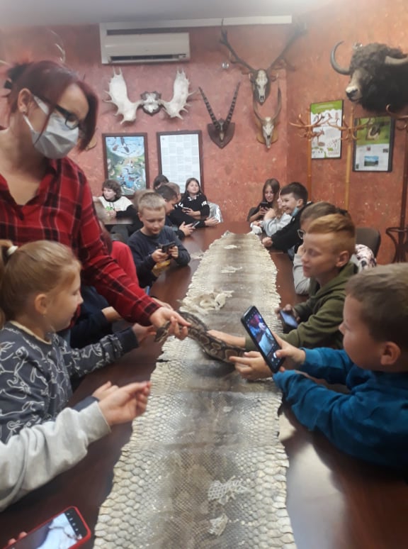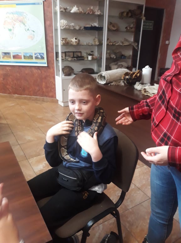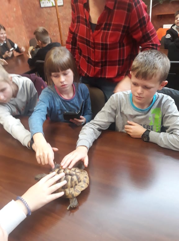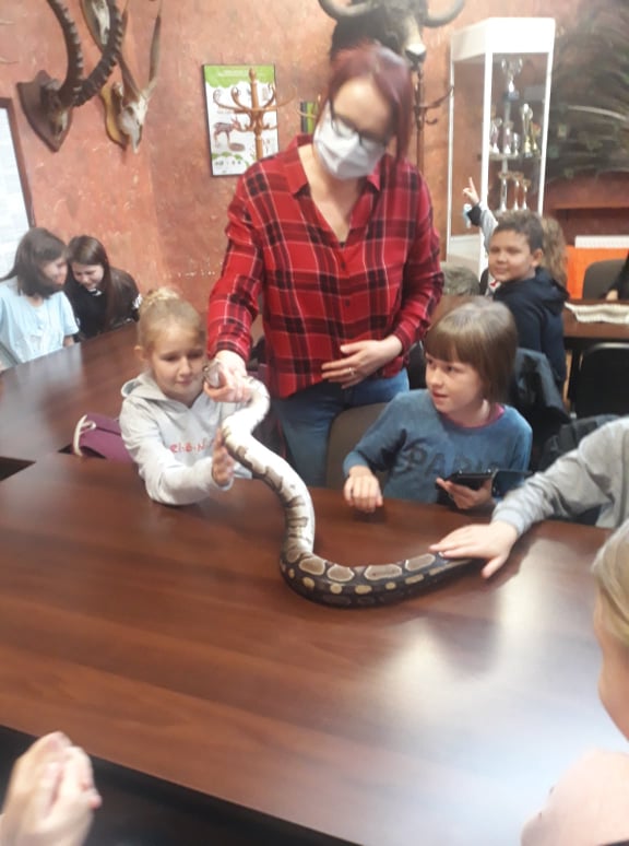 Stąd przejechaliśmy do płockiego ZOO, gdzie dzieci uczestniczyły w ciekawych warsztatach przyrodniczych, podczas których mogły poznać środowisko życia i sposoby odżywiania wybranych gadów, płazów i owadów. Niezwykłe wrażenia doznały podczas możliwości dotknięcia i pogłaskania niektórych istot żywych, takich jak pyton, jaszczurka, ropucha i żółw.
