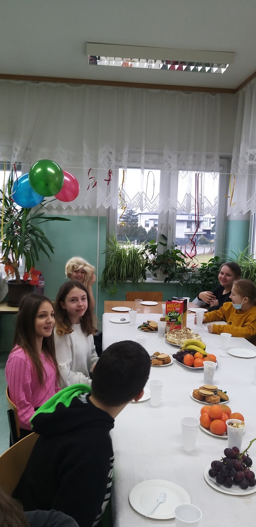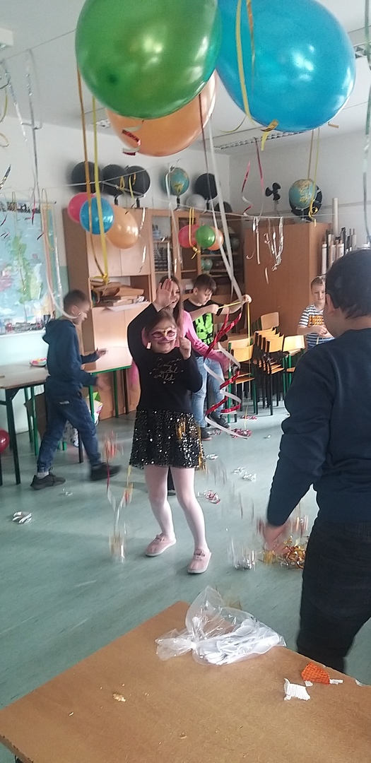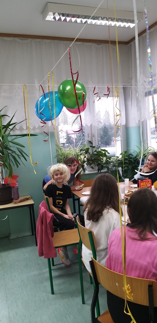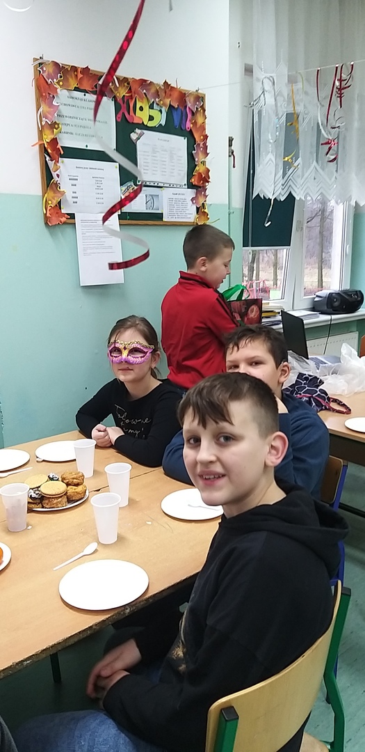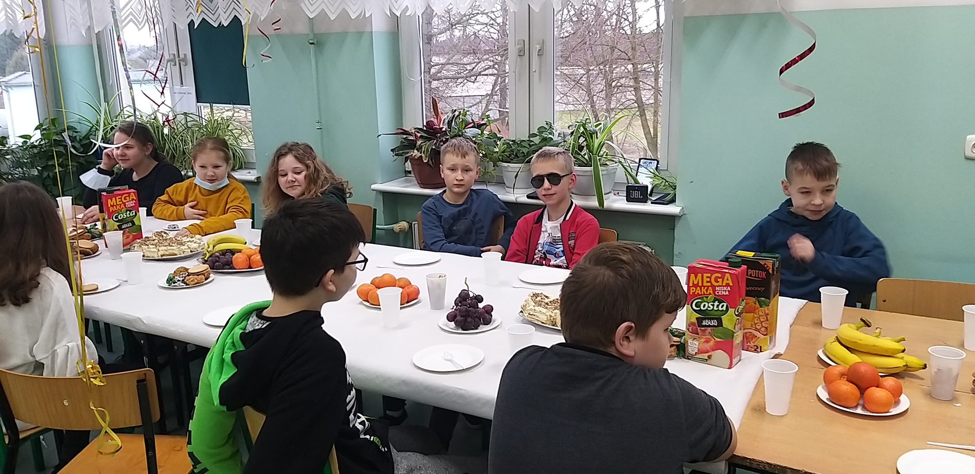 Mijający tydzień to ostatnie dni nauki przed feriami. Od lat w naszej szkole odbywały się w tym czasie zabawy choinkowe dla wszystkich uczniów. Ze względu na pandemię i naukę zdalną w klasach V-VIII taka uroczystość nie mogła się niestety odbyć. Aby jednak szkolnej tradycji stało się zadość, uczniowie klasy IV wraz z wychowawcą zorganizowali klasowy bal karnawałowy. Okazało się, że do dobrej zabawy nie potrzeba wielu uczestników – wystarczy dobry humor i pozytywne nastawienie. Była ulubiona muzyka, tańce oraz konkursy, w których każdy miał szansę pokazać swoje umiejętności i talenty. Skoro zabawa, nie mogło zabraknąć poczęstunku. Rodzice zadbali, by dzieci między tanecznymi szaleństwami mogły odpocząć i nabrać sił do dalszej zabawy. Dostarczyli pyszne ciasta, cukierki, owoce i soki, za które serdecznie dziękujemy.