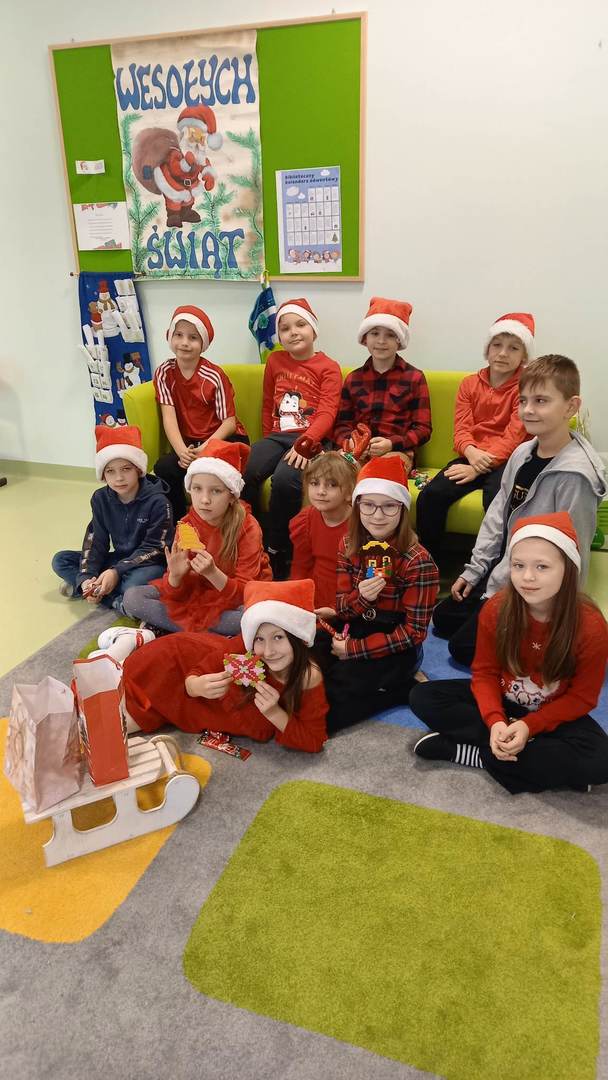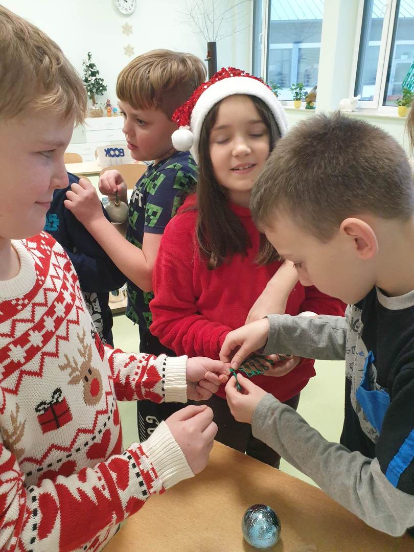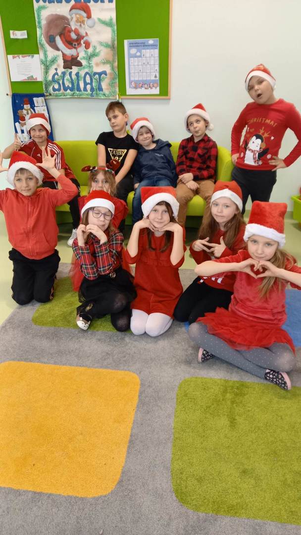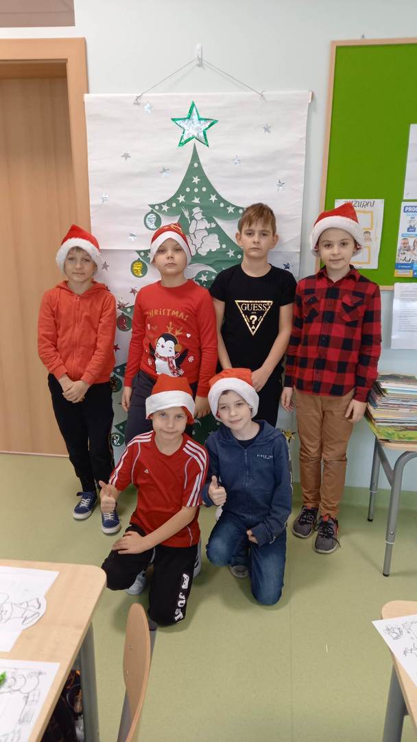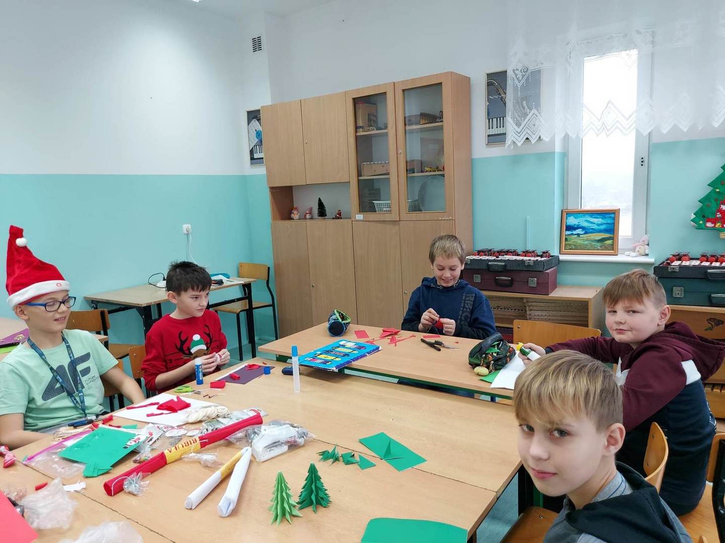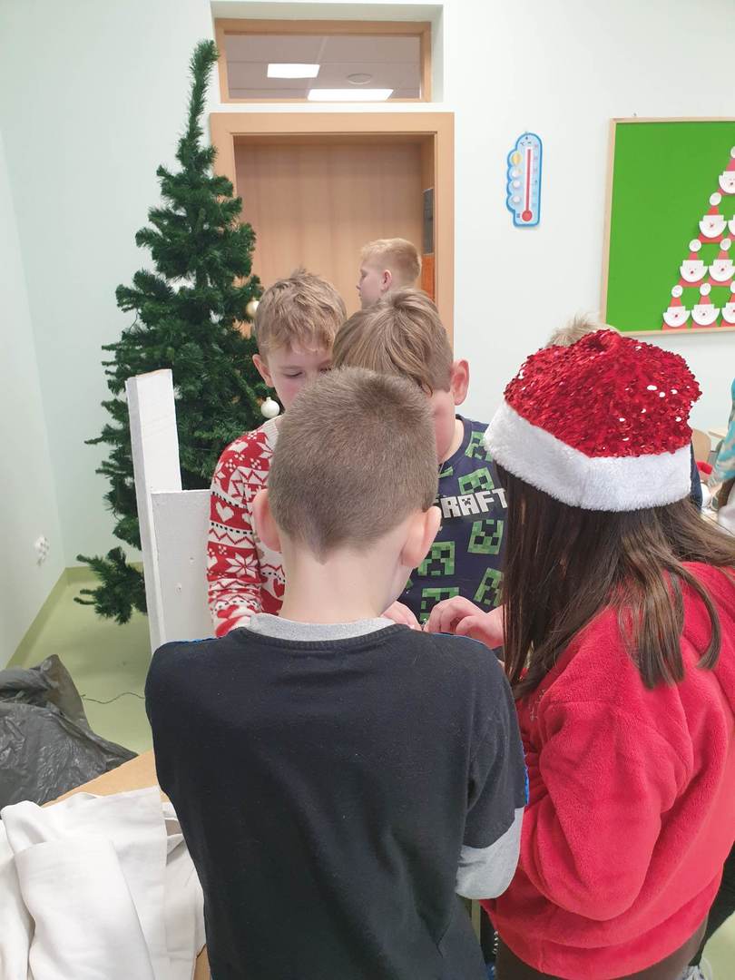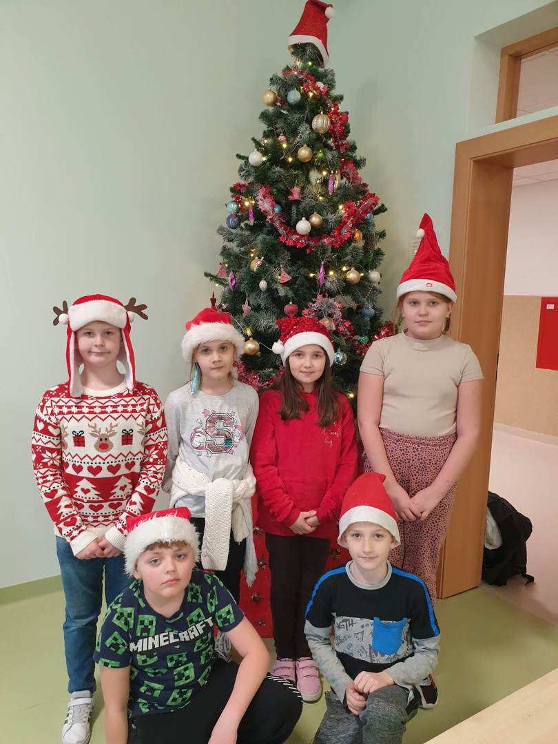 Lekcje muzyki to teraz przygotowania do wspólnego kolędowania. Zza drzwi sal rozbrzmiewają znane wszystkim melodie polskich kolęd i piosenek o tematyce świątecznej. Odbywają się też próby przed występem z okazji świąt. Te z kolei pod kierunkiem nauczycielki religii. Zajęcia świetlicowe także swoją tematyką związane są z okresem świątecznym. Dzieci chętnie wykonują różne ozdoby, które następnie wędrują na klasowe dekoracje. W czasie przerw królują mikołajowe czapki, przypominające o tym, że święta to też czas na prezenty.