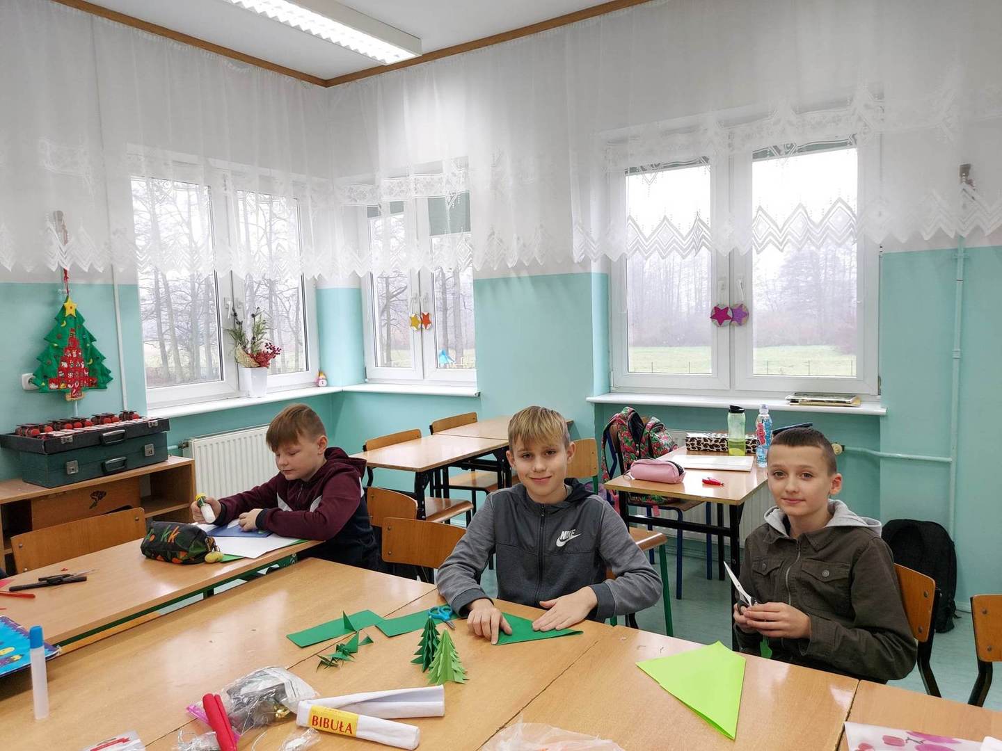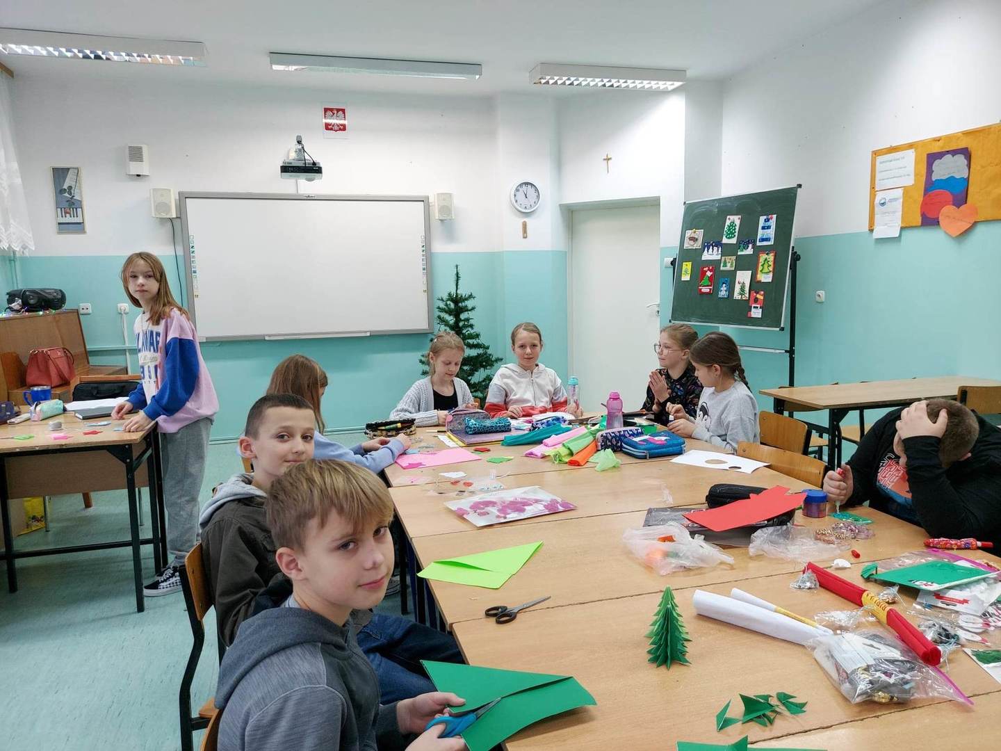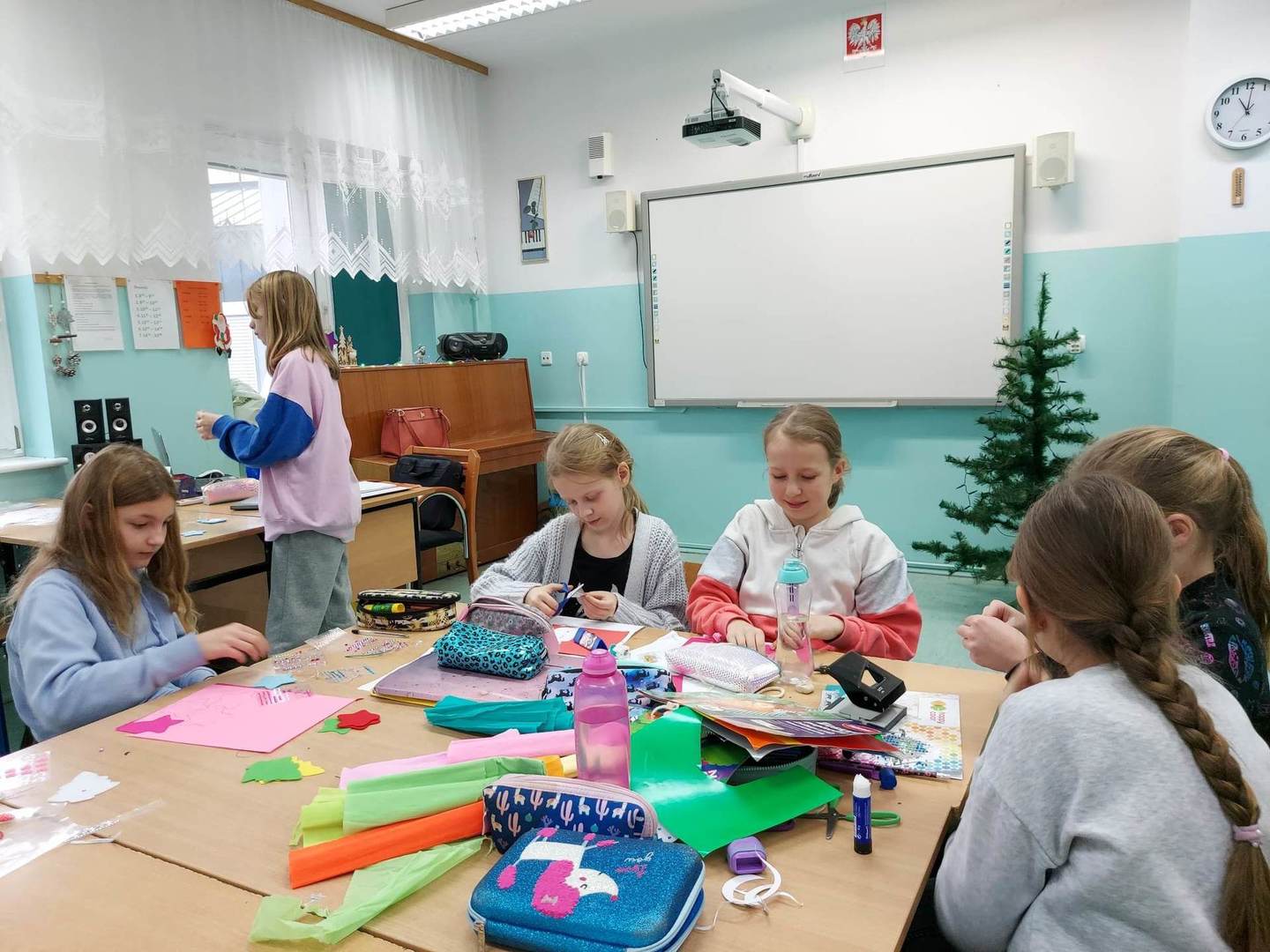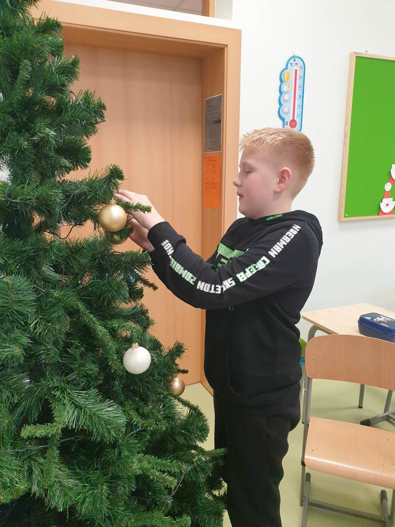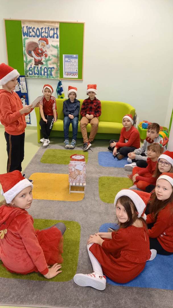 Lekcje muzyki to teraz przygotowania do wspólnego kolędowania. Zza drzwi sal rozbrzmiewają znane wszystkim melodie polskich kolęd i piosenek o tematyce świątecznej. Odbywają się też próby przed występem z okazji świąt. Te z kolei pod kierunkiem nauczycielki religii. Zajęcia świetlicowe także swoją tematyką związane są z okresem świątecznym. Dzieci chętnie wykonują różne ozdoby, które następnie wędrują na klasowe dekoracje. W czasie przerw królują mikołajowe czapki, przypominające o tym, że święta to też czas na prezenty.