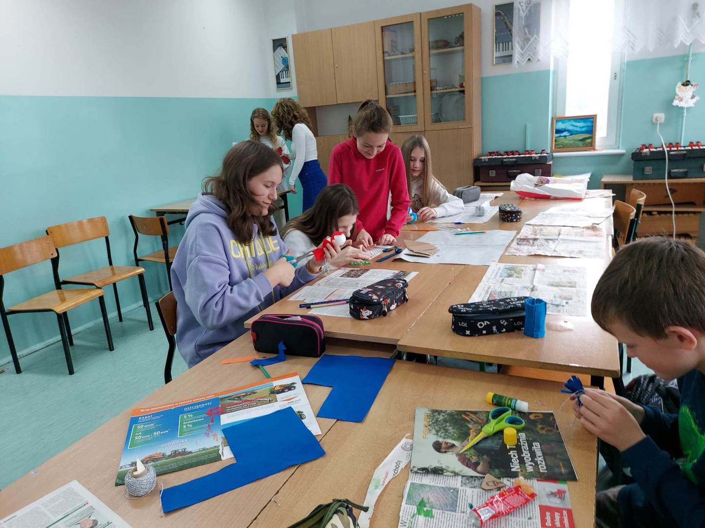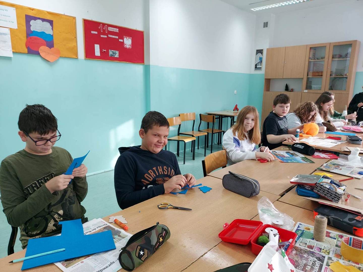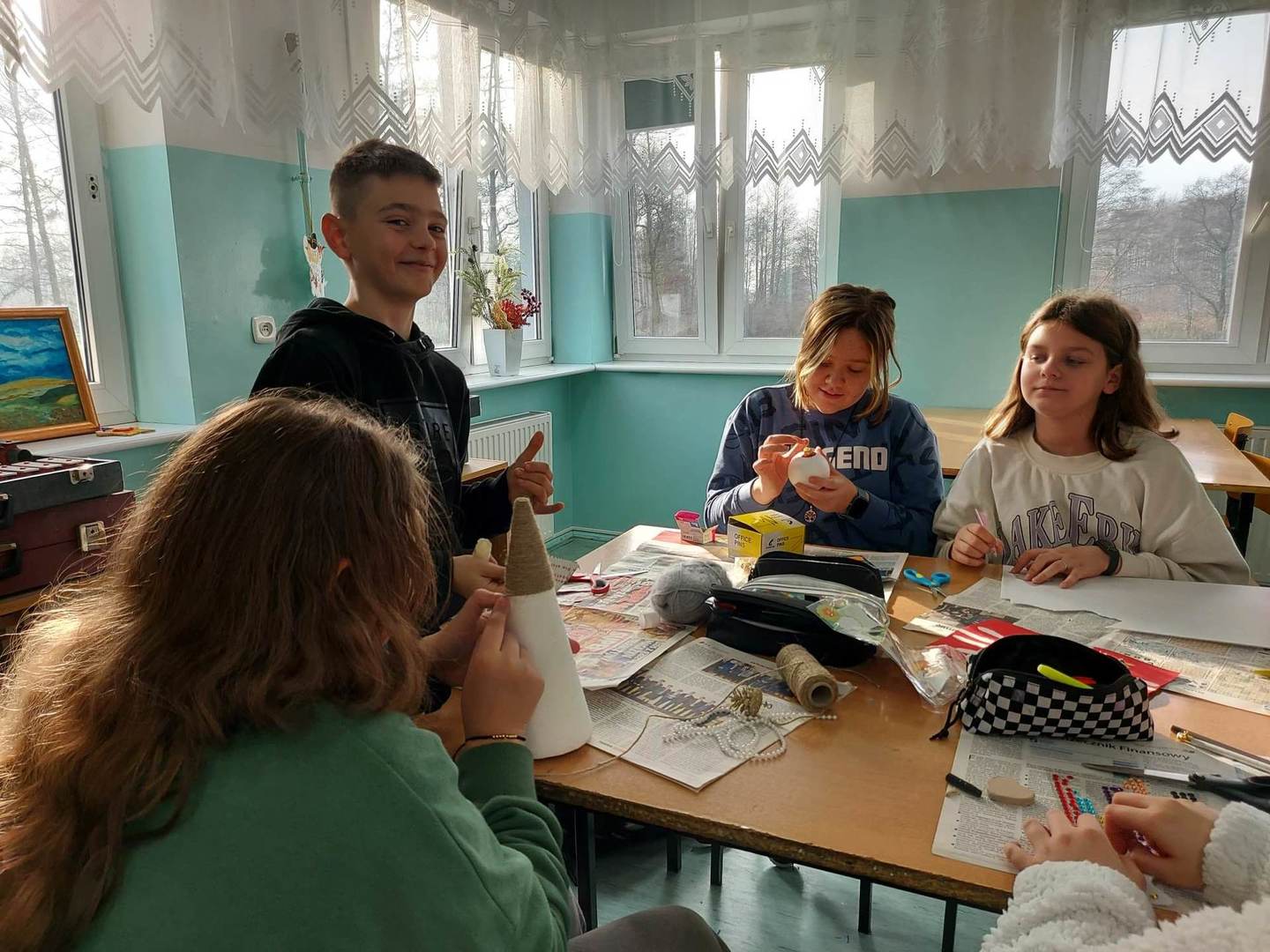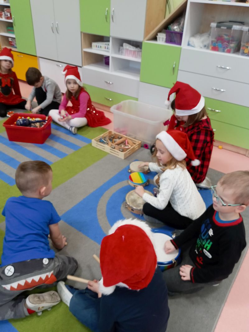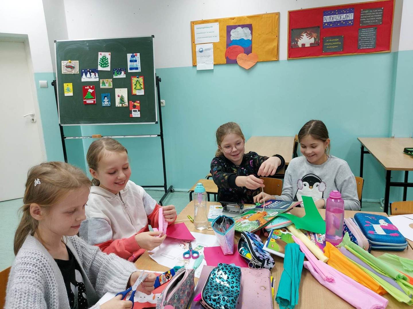 Lekcje muzyki to teraz przygotowania do wspólnego kolędowania. Zza drzwi sal rozbrzmiewają znane wszystkim melodie polskich kolęd i piosenek o tematyce świątecznej. Odbywają się też próby przed występem z okazji świąt. Te z kolei pod kierunkiem nauczycielki religii. Zajęcia świetlicowe także swoją tematyką związane są z okresem świątecznym. Dzieci chętnie wykonują różne ozdoby, które następnie wędrują na klasowe dekoracje. W czasie przerw królują mikołajowe czapki, przypominające o tym, że święta to też czas na prezenty.