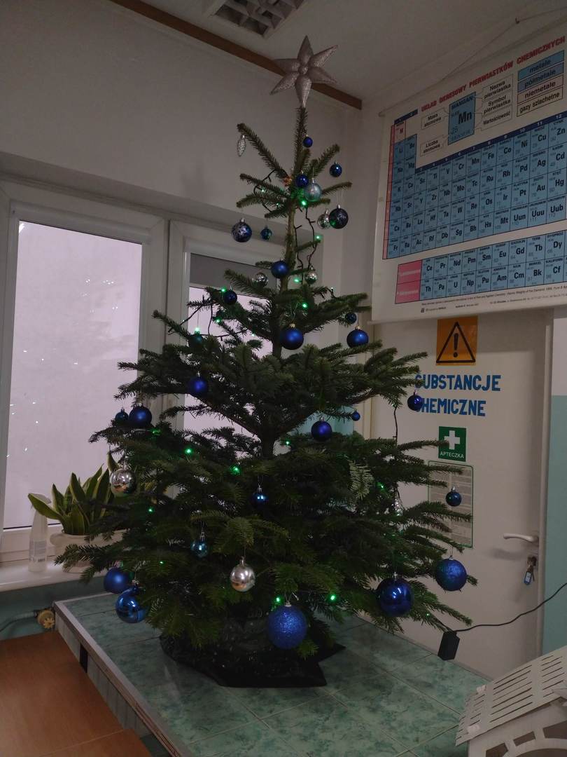 Chociaż do świąt jeszcze prawie trzy tygodnie, to w naszej szkole atmosfera świąteczna zagościła na dobre. W lekcyjnych salach znalazło się wiele bożonarodzeniowych akcentów. W oknach zawisły różnobarwne girlandy z bombkami i płatkami śniegu, dzwoneczki i świąteczne figurki. Uczniowie pod okiem nauczycieli plastyki i techniki wykonują ozdoby świąteczne, które zostaną przeznaczone na sprzedaż na kiermaszu świątecznym. Najważniejszym symbolem świąt jest choinka. W holu głównym szkoły stanęło właśnie piękne żywe drzewko, pachnące lasem, udekorowane migającymi lampkami symbolizującymi skrzące w słońcu płatki śniegu.