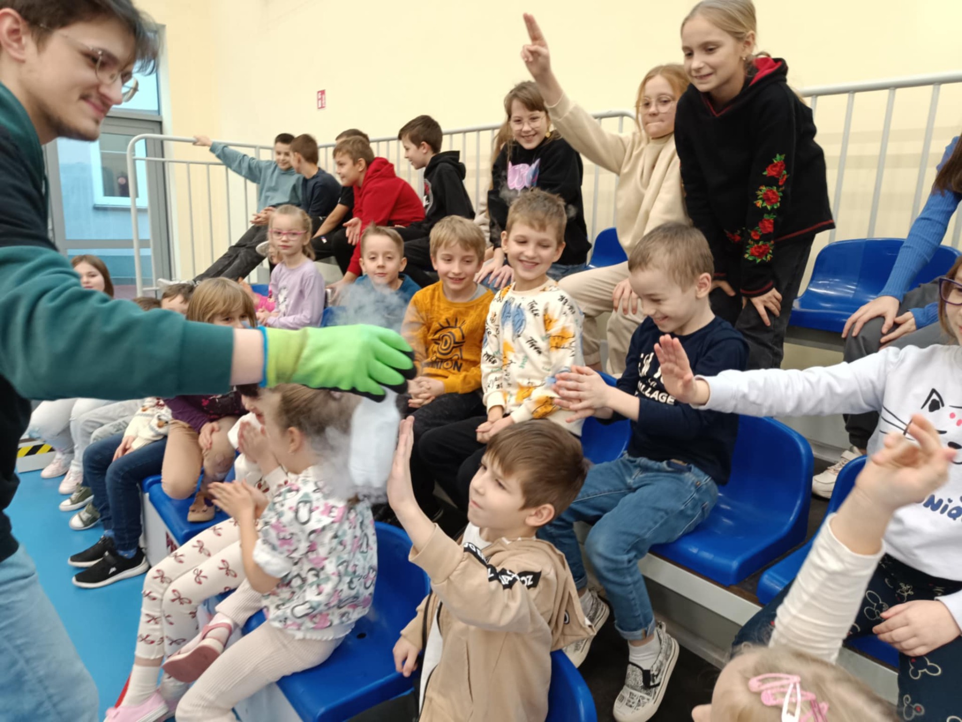 16 grudnia klasa pierwsza uczestniczyła w niecodziennej lekcji pt. ”Poczuj chemię do fizyki” prowadzonej przez grupę Zaelektryzowani. Prowadzący zaprezentował widowiskowe eksperymenty i doświadczenia. Celem pokazu było przybliżenie tajników fizyki i chemii w bardzo prosty i atrakcyjny sposób. Chemia i fizyka to nie tylko reguły książkowe, których trzeba się nauczyć, ale to także wiedza praktyczna, która może przydać się nam w życiu codziennym. W programie znalazły się zabawy z gazami (ciekły azot, hel, metan), ale również ciekawe zjawiska z fizyki.