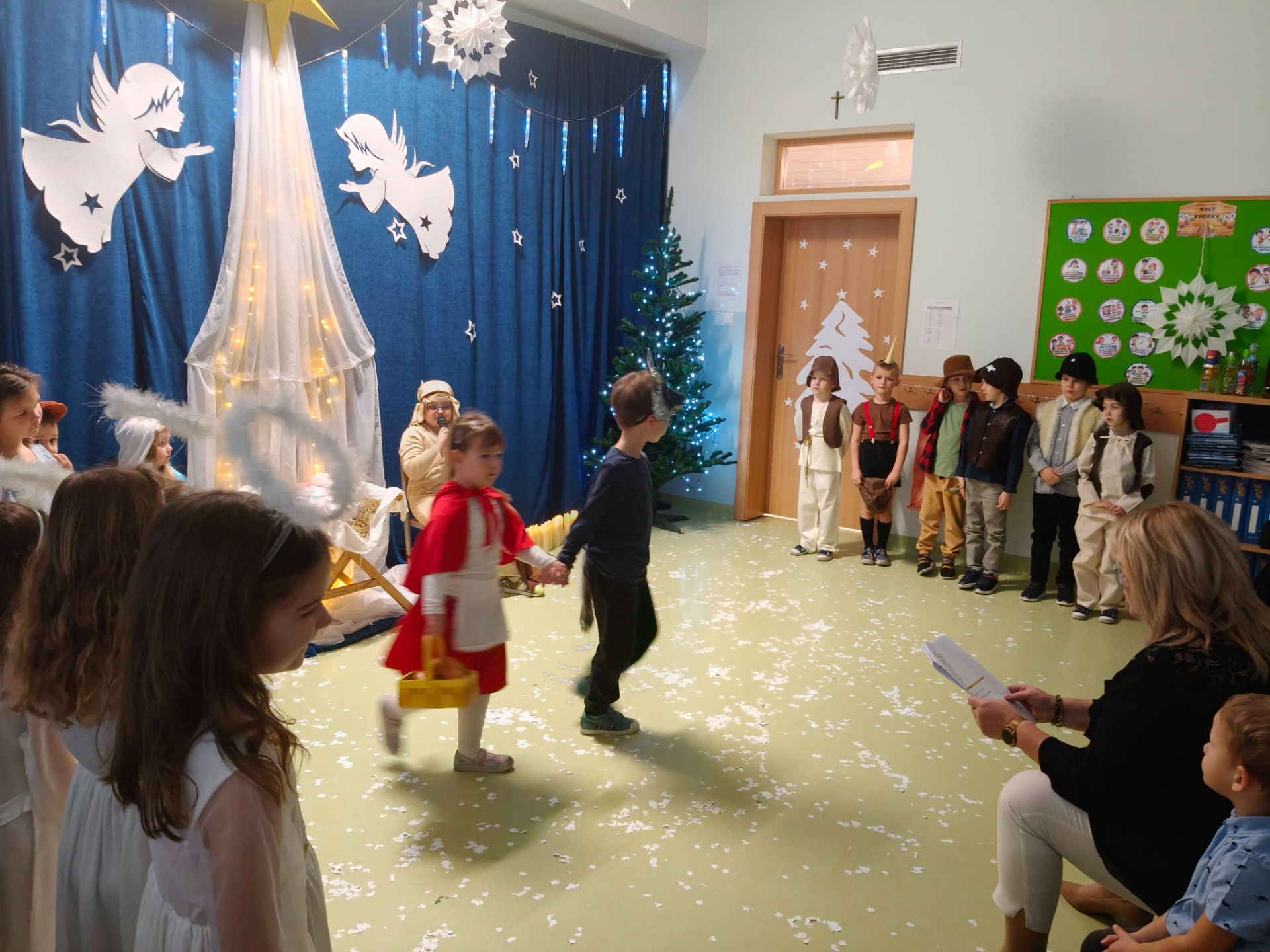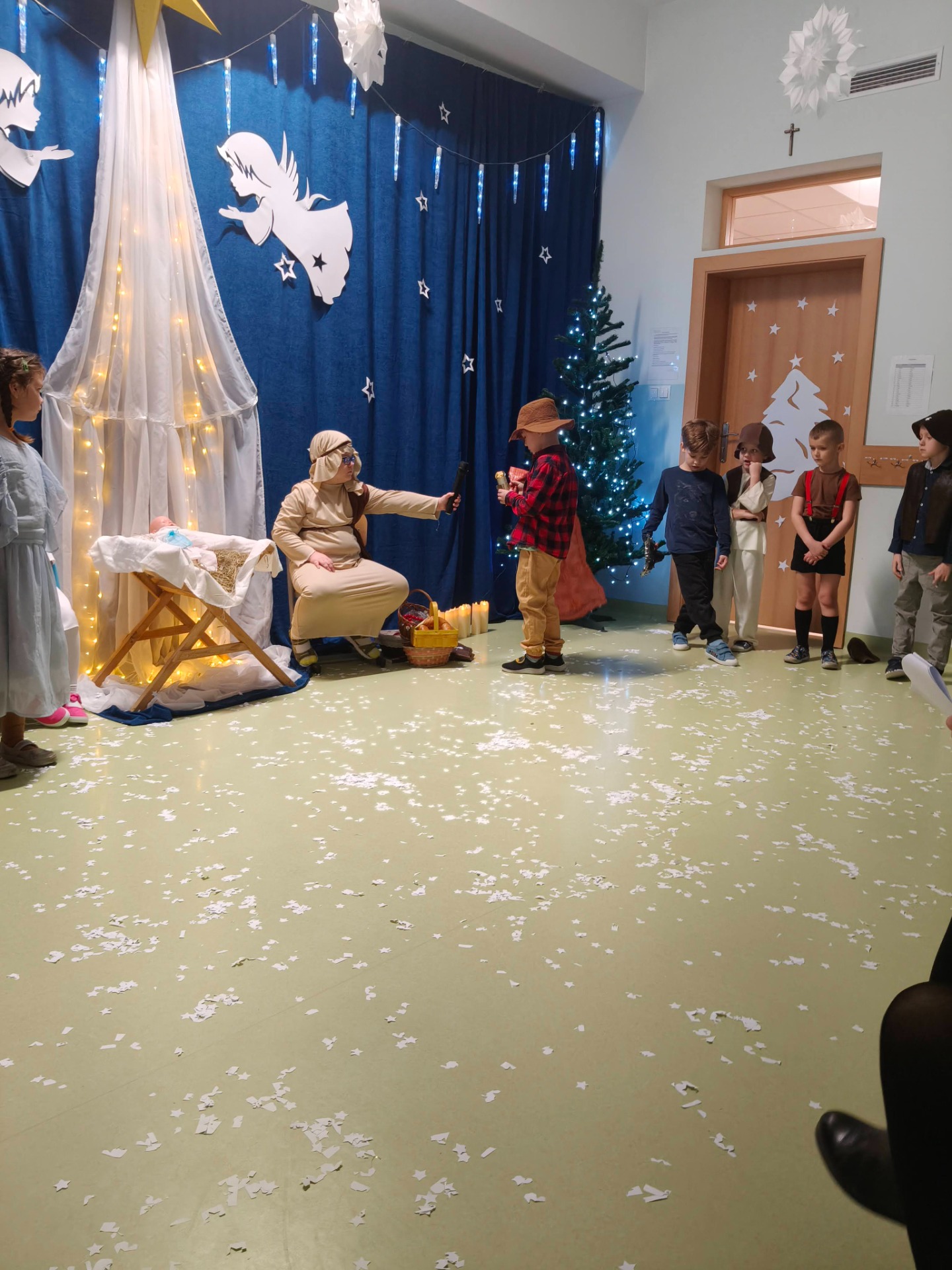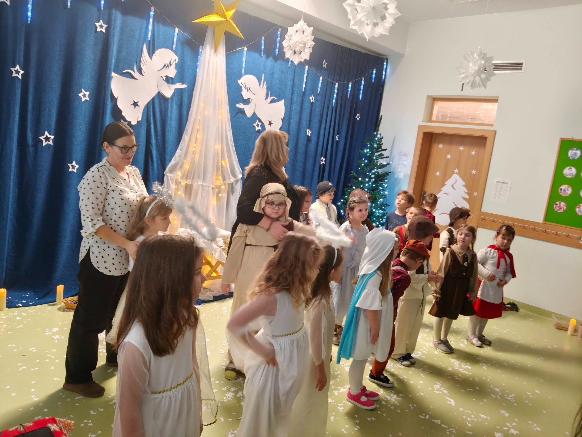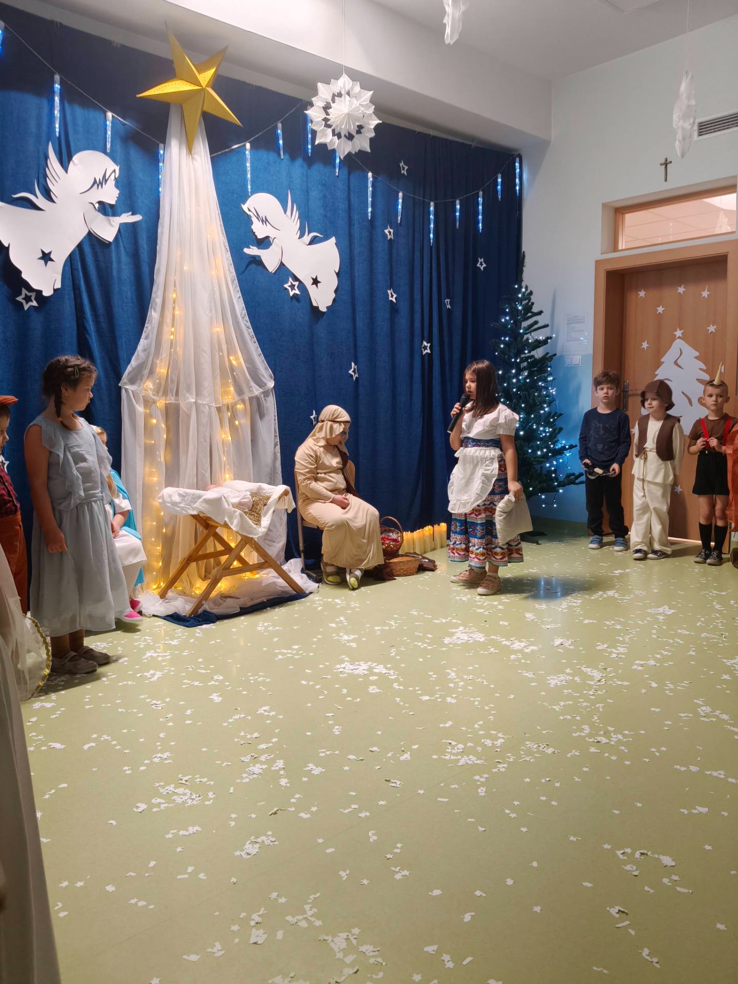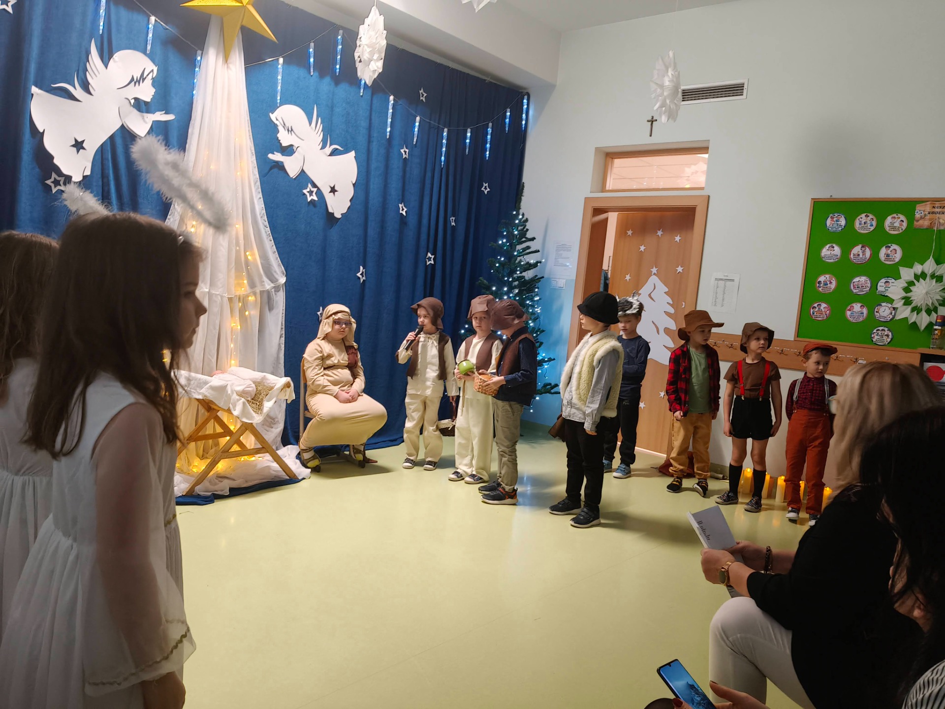 Święta Bożego Narodzenia to czas radości, rodzinnych spotkań oraz wrażliwości na drugiego człowieka. Dzieci z grupy „Sówki” wyraziły te wartości w swoim wyjątkowym przedstawieniu jasełkowym przygotowanym dla rodziców. Wcielając się w role aktorów , od Maryi i Józefa, po postacie z bajek, zaprezentowały swoje umiejętności i ogromne serce włożone w występ.